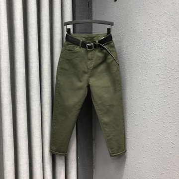 軍綠色哈倫牛仔褲女歐貨春季新款休閑高腰顯瘦百搭小腳蘿卜老爹褲