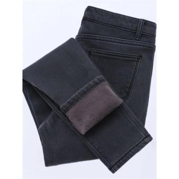 2025秋冬加絨加厚牛仔褲女韓版高腰彈力修身顯瘦新款保暖褲子外穿