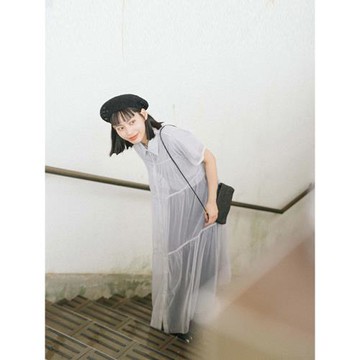 日本 GRL - [必收]飄逸顯瘦雙層傘紗裙-淺灰棕 (M)