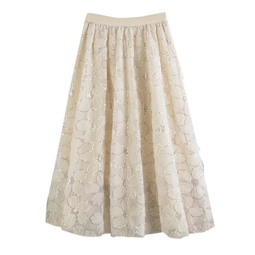 法式復古鏤空亮片網紗半身裙女春季大擺A字裙中長款小個子裙子94