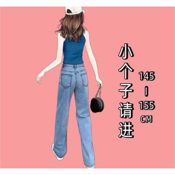 小個子直筒牛仔褲女春秋冬九分2025新款15顯高加絨直筒高腰闊腿褲