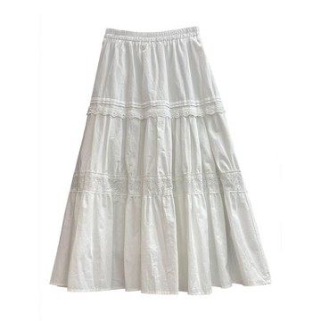法式復古全棉白色蕾絲刺繡半身裙女2024春松緊高腰中長款a字傘裙