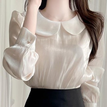 2025春新款襯衣洋氣時尚雪紡衫女娃娃領上衣百搭顯瘦超仙長袖小衫
