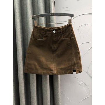 咖啡色小個子高腰牛仔短裙女2025春季時尚洋氣A字開叉半身包臀裙