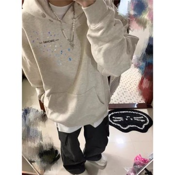 鞠婧祎楊冪同款24灰色閃粉發泡字母寬松加厚連帽拉鏈衛衣外套女秋