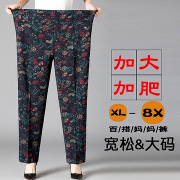 中老年秋冬季媽媽加肥大碼200斤花色高腰直筒褲寬松奶奶加絨長褲