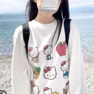 HelloKitty凱蒂貓長袖女寬松潮牌衛衣春秋冬季寬松顯瘦不帶帽上衣