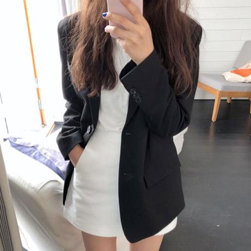 韓版chic小西裝女外套2025新款休閑寬松中長款ins黑色西服春秋季