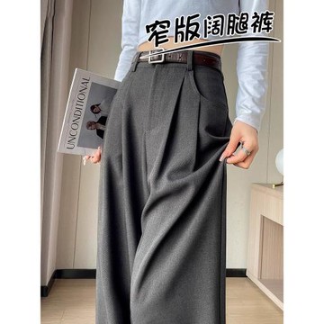 灰色闊腿西裝褲女裝2025春秋新款窄版高腰垂感小個子直筒拖地長褲