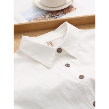 2025秋季新款簡約文藝純棉白色襯衫女士長袖學生百搭打底木扣襯衣