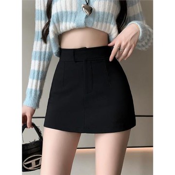 盤盤【美高學姐】彈力高腰半身裙女秋季a字短裙氣質小個子包臀裙