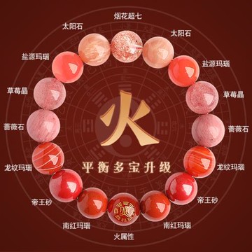 (免運)五行缺火補火喜用木手鏈火晶多寶升級木屬性能量平衡紅色飾品男女