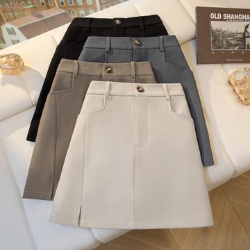 點我下載側開叉西裝半身裙女2025夏季防走光高腰a字裙顯瘦小個子百搭短裙