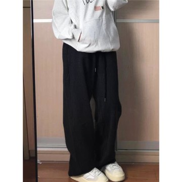 美式顯瘦黑色休閑衛褲女春秋季高腰直筒運動褲寬松慵懶垂感闊腿褲