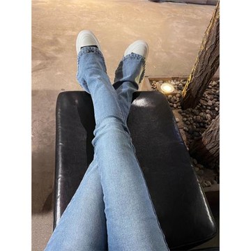 淺藍色微喇叭牛仔褲女秋季新款175高個子加長高腰顯瘦馬蹄拖地褲