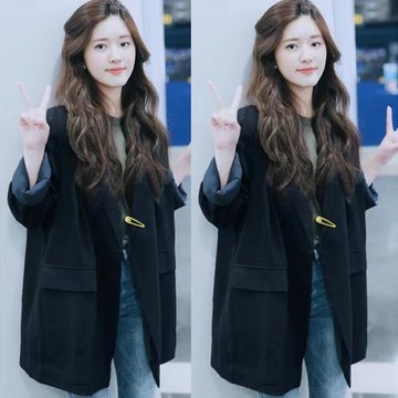 日系黑色小西裝女秋冬小香風寬松休閑百搭西服小個子顯瘦外套上衣