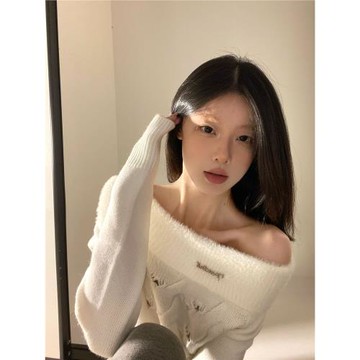 點我下載原創一字肩設計感紐花針織衫通勤百搭寬松套頭上衣女純欲風毛衣秋