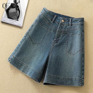 藍色牛仔短褲女202新款夏季薄款高腰顯瘦闊腿A字褲小個子外穿熱褲