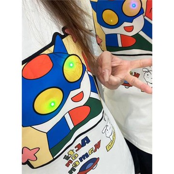 奧特曼發光t恤女成人情侶裝大人小孩閃燈短袖一拍就亮發光的衣服