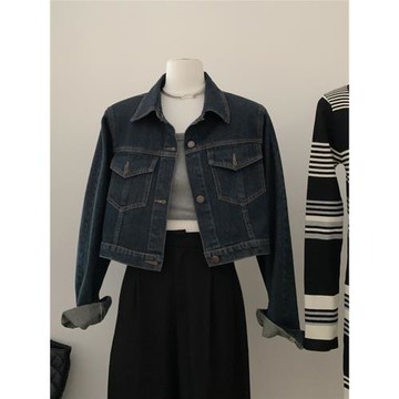 自留爆款推薦~港風復古藍色牛仔外套女春季寬松顯瘦短款夾克上衣