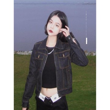 Eccentric 美式復古翻領黑色牛仔短外套女秋百搭寬松短款夾克上衣