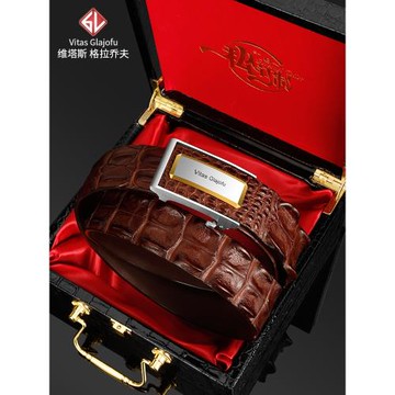 (免運)新加坡灣鱷雙排大骨鱷魚皮褲腰帶男鎢鋼自動扣高檔正品高檔進口