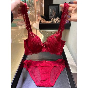 性感蕾絲文胸套裝本命年紅色黑色白色綠色鋼托胸罩薄款透氣女內衣