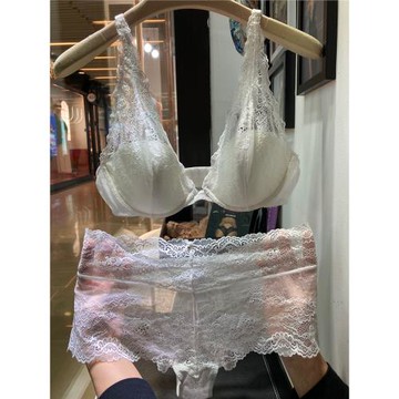 法式超薄款女士文胸套裝蕾絲收副乳透明白色少女大碼內衣深V性感