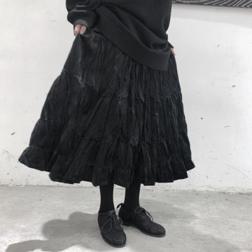 日單原單2023夏新日系風設計感小眾寬松褶皺蛋糕裙百搭大擺裙傘裙