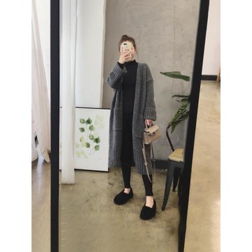 點我下載中長款羊絨開衫外套女2025春秋季新款慵懶風寬松羊毛針織毛衣加厚