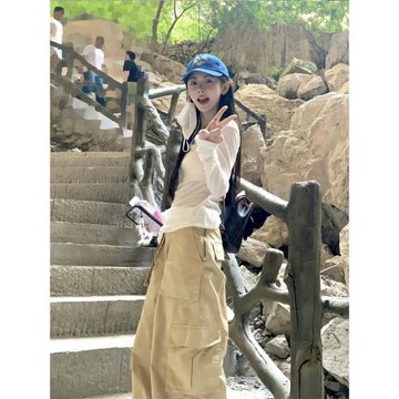 鞠婧祎同款多口袋卡其色工裝褲女2025新款美式休閑寬松闊腿直筒褲