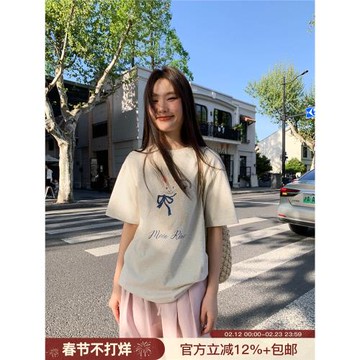 你好卡農 原創蝴蝶結兔子印花短袖t恤女夏季新款寬松純棉圓領上衣
