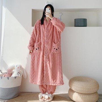珊瑚絨睡袍長款冬季天郁金香睡衣女加厚加絨法蘭絨浴袍家居服套裝