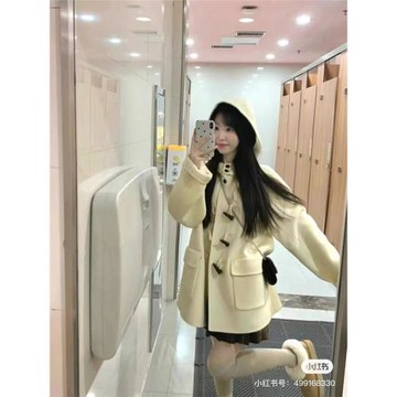 減齡牛角扣連帽小個子雙面羊絨手工羊毛呢子短款大衣女25秋冬外套