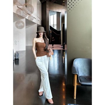(L) charinyeh針織棉質無袖珍珠白色套裝