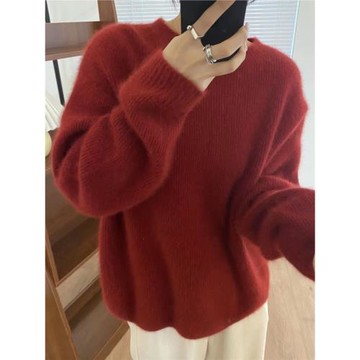 秋冬羊絨衫女圓領毛衣純色上衣套頭慵懶內搭通勤羊毛針織打底衫