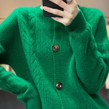 秋冬季新款100%純羊毛衫外套女寬松復古毛衣短款加厚羊絨針織開衫