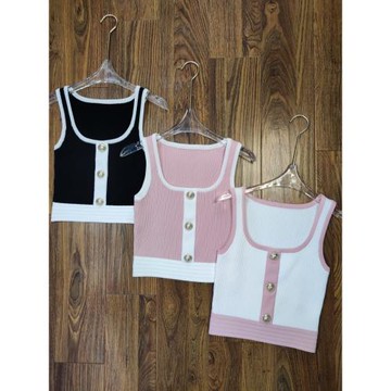 艾菲巴爾曼夏季B家拼色吊帶背心修身紐扣無袖氣質百搭針織短款