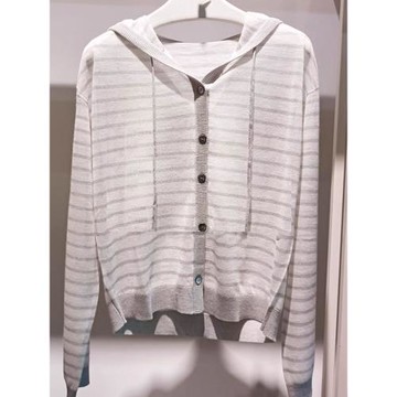 點我下載商場同款正品2025夏條紋連帽短款針織開衫薄外套女1F8632541NS
