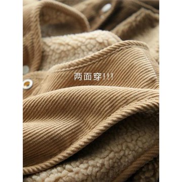 冬季羊羔毛+燈芯絨圓領無袖疊穿馬甲背心加絨兩面穿外套女秋冬款