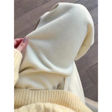 德絨奶油糯米褲白色闊腿褲女高級感秋冬高腰休閑寬松顯瘦加絨褲子