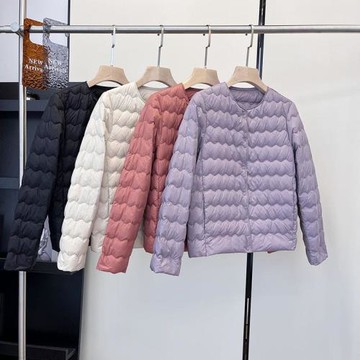 米粒家~輕薄90白鴨絨波浪型壓線V領圓領內穿短款羽絨服外套女冬新