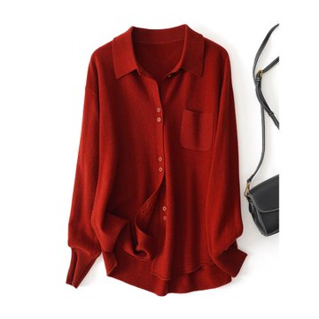 溫暖又利落~法式氣質高支荃羊毛毛衣開衫顯白翻領針織POLO襯衫女