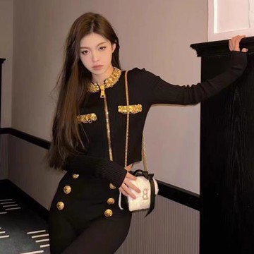 巴爾曼吉娜秋冬新女裝修身短款針織小開衫外套上衣時尚設計感