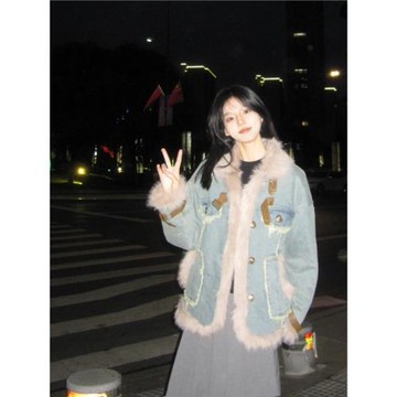 復古高級感毛毛牛仔羊羔毛外套女秋冬季2025新款加厚休閑棉衣棉服