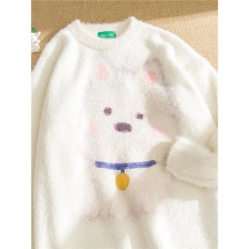 LSNZ日系軟糯可愛小狗馬海毛毛衣男女情侶奶呼呼慵懶風寬松針織衫