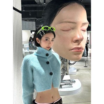 CHENQG/陳錢罐 半高領短款針織開衫女2025春秋新款溫柔風毛衣外套