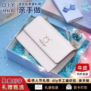 送女友情人節禮物高級感真皮diy手工包編織材料包斜挎包生日禮物