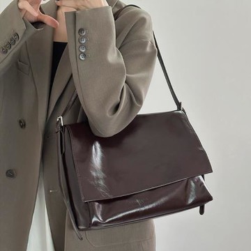 高級感油蠟皮郵差包女2024夏季新款大容量通勤腋下包單肩斜挎包包