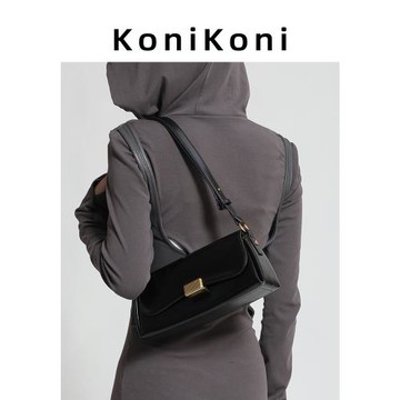 KoniKoni真皮小眾黑色法棍腋下包女2025新款高級超火單肩斜挎小包